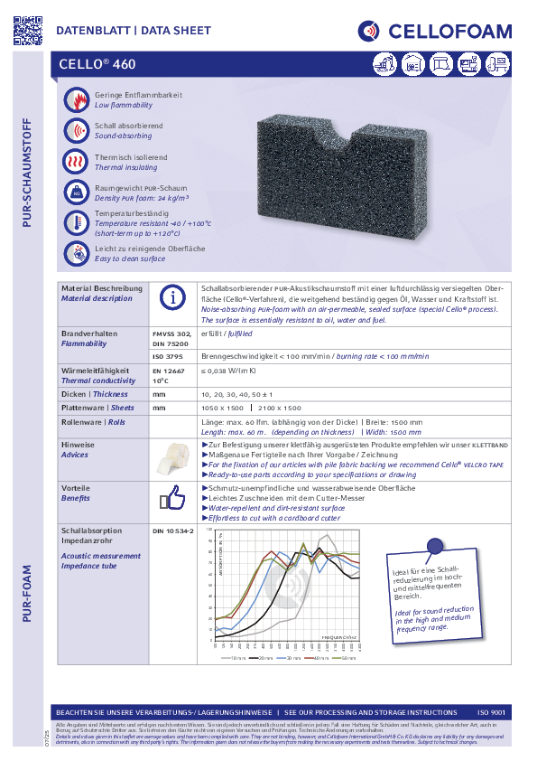 PUR-Schaum mit einer luftdurchlässig versiegelten Oberfläche. Cello® 460 überzeugt durch seine schmutz-unempfindliche, wasserabweisende und leicht zu reinigende Oberfläche.