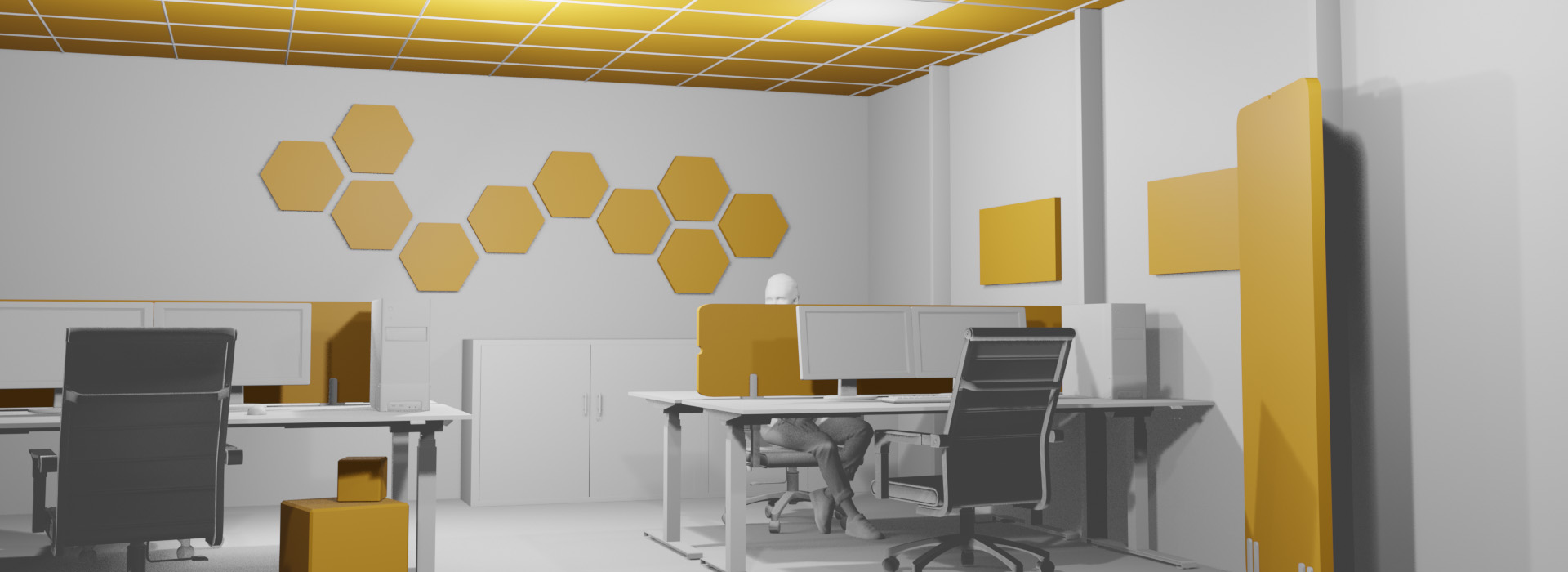 soni HEXAGON sind formschöne Akustik-elemente zur Schallabsorption und Optimierung der Raumakustik.