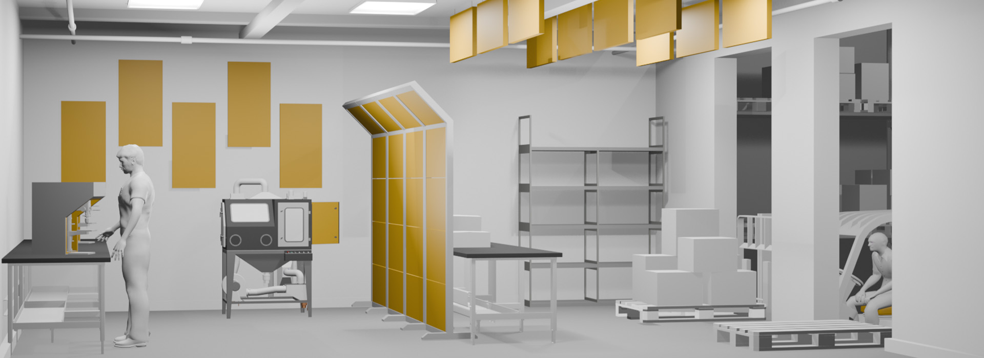 Auch in bereits genutzten Räumen lassen sich ohne großen Aufwand Lärmschutzelemente problemlos an Decke oder Wand anbringen und so für eine spürbare Verbesserung der Akustik sorgen – in Ihrem Büro, Tonstudio, Kindergarten, Restaurant, Besprechungszimmer oder Produktionshalle.